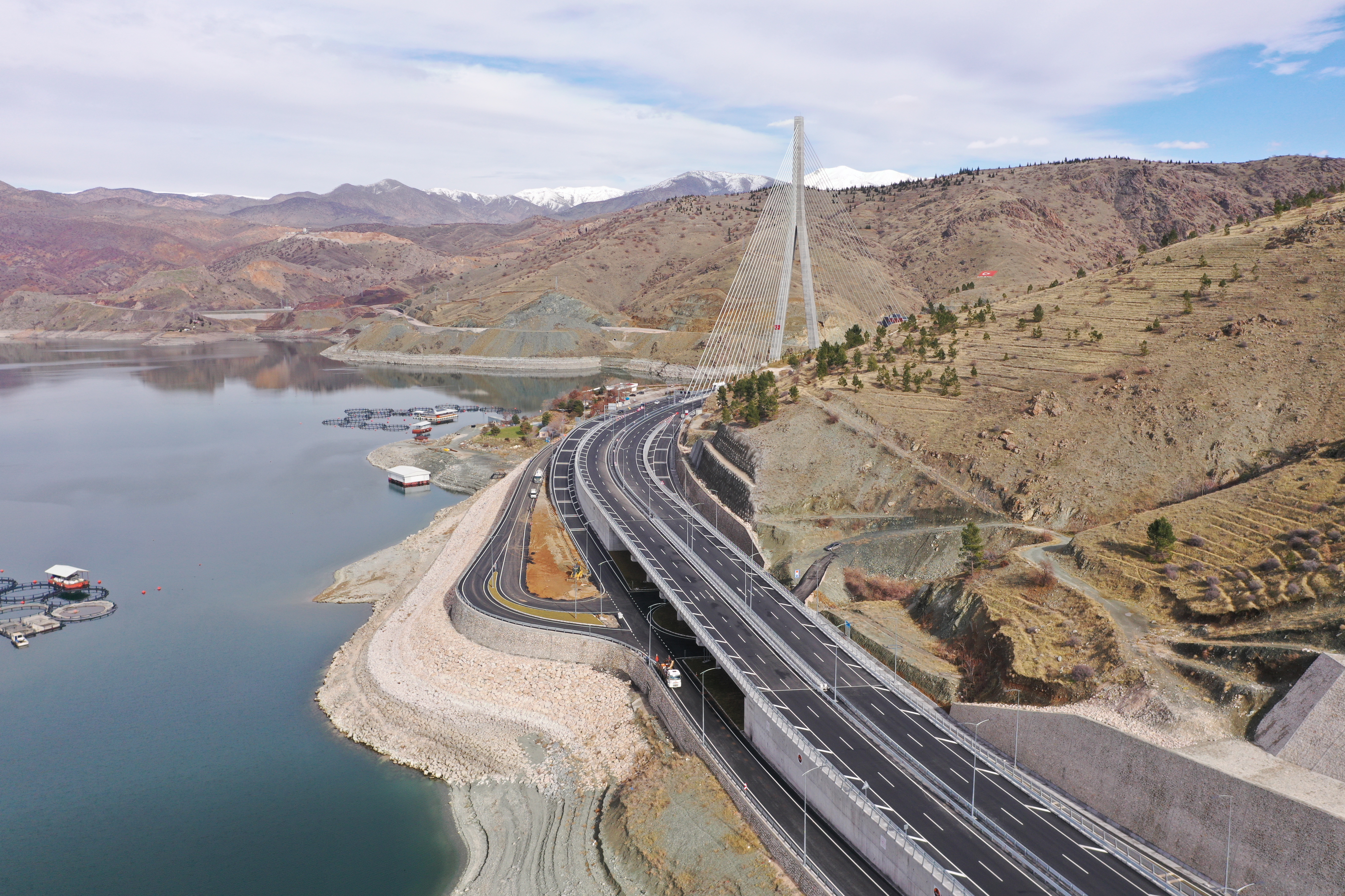 The project involves the construction of a bridge connection tunnel with a total length of 4.820 m including double tubes with 4 vehicle crossings and 4 turnouts and road. This special category bridge which is the 4th single pylon cable-stayed bridge of the world with a 660 m length and 23,86 width, features a single pylon standing at 168,5 m height ‘Y’ shaped reinforced concrete tower with 380 m middle opening. It has great importance in terms of logistics because it is the shortest route between Malatya and Elazığ as well as a crossing route for 16 provinces of Eastern Anatolia.