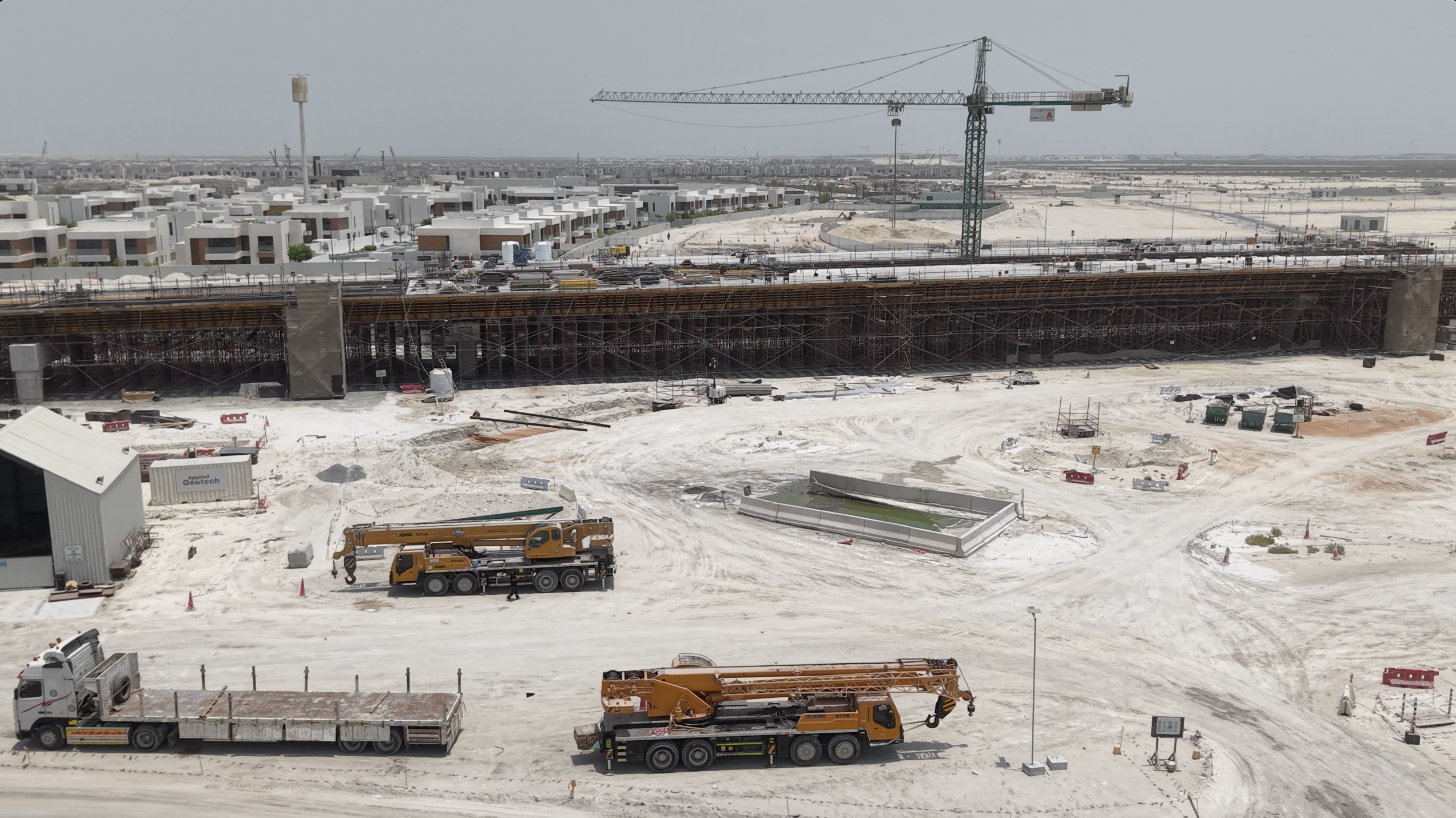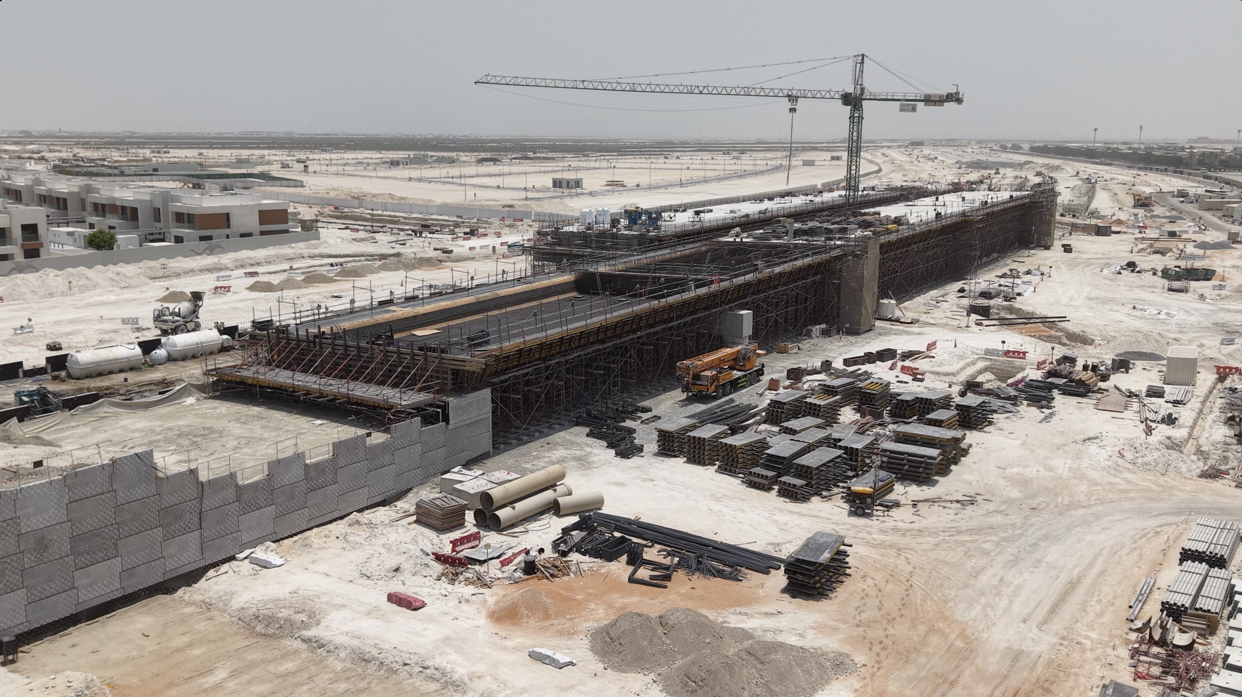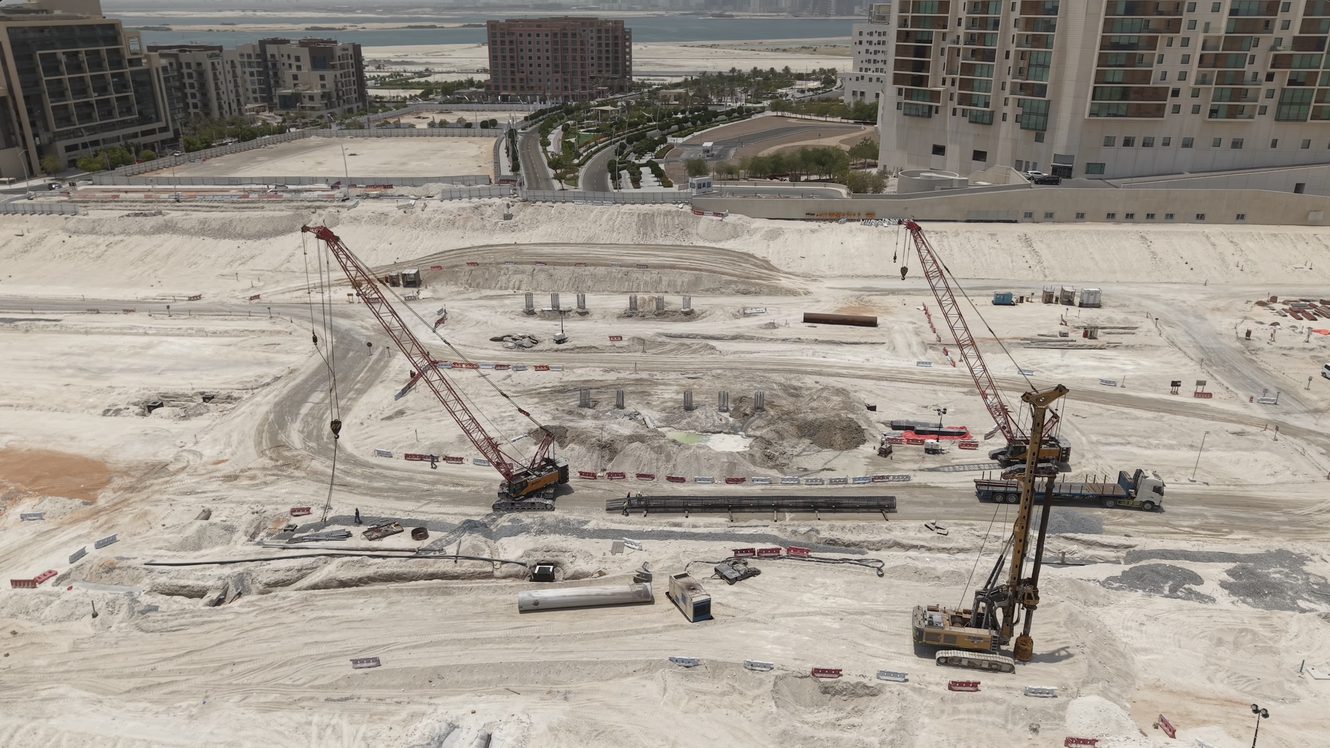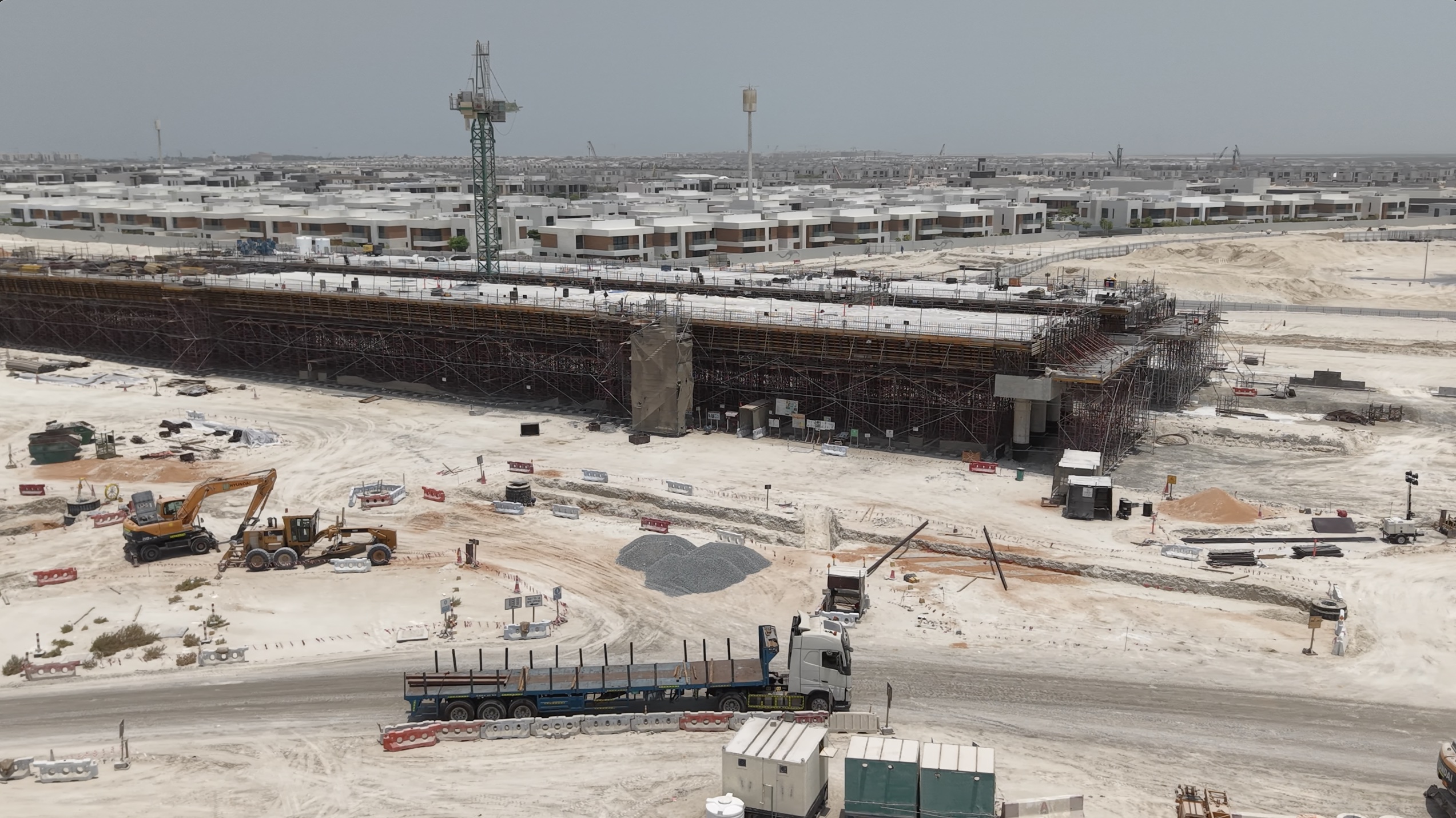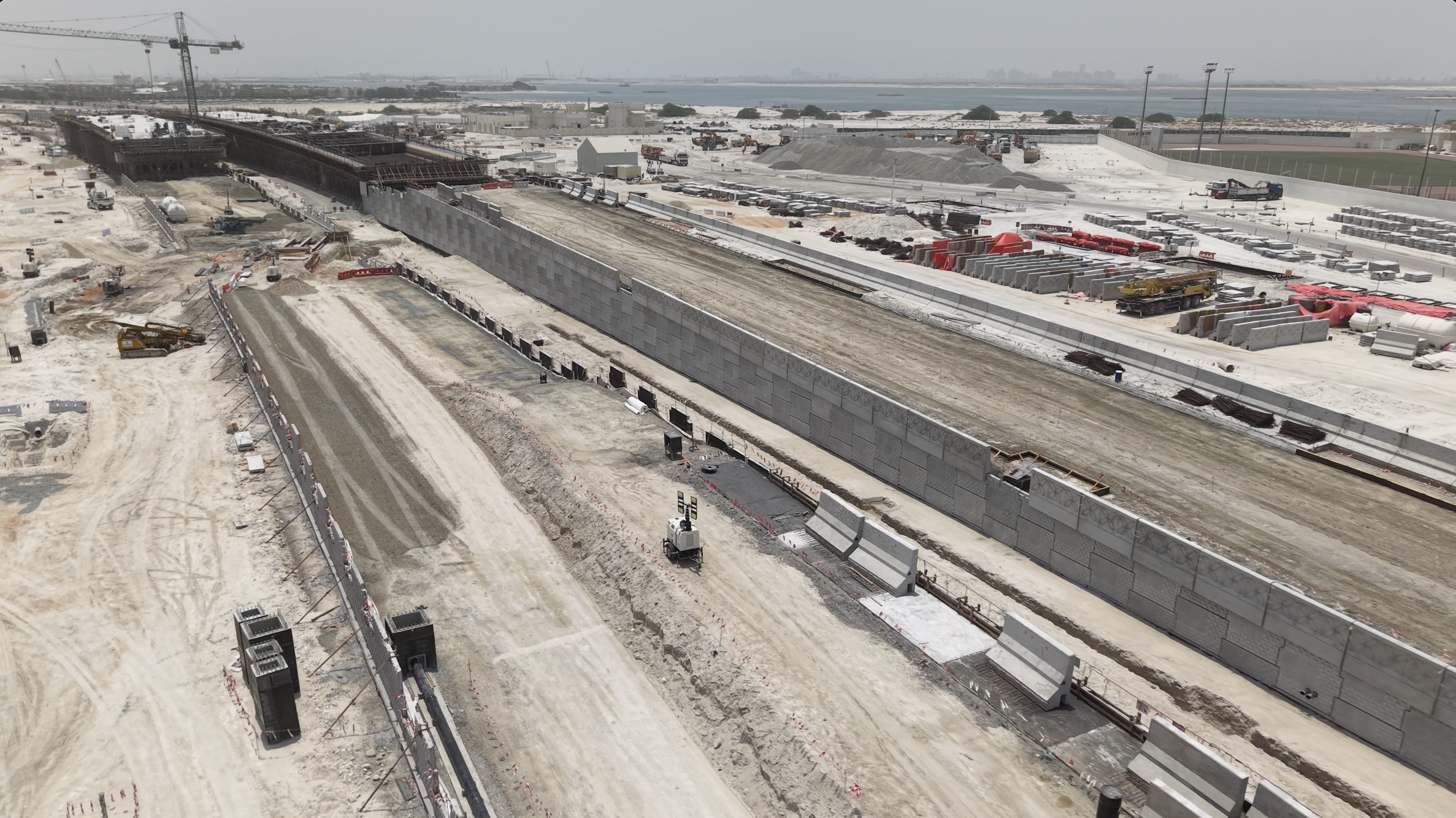 The project involves the construction and upgrade of a 4.7 km section of the Mid Island Parkway Road. The works extend from the existing Saadiyat Interchange to the newly planned Khor Laffan crossing. The scope of the project includes the construction of two bridges and one pedestrian overpass, the upgrading of the Saadiyat Interchange, as well as the construction of a pump station, installation of a stormwater drainage network, implementation of an intelligent transportation system (ITS), provision of utility corridors for electricity and telecommunication networks, and landscaping works.