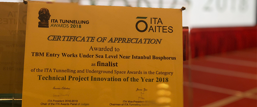 Dünyanın en prestijli tünelcilik ödüllerinden “ITA Tünelcilik Ödülleri” kapsamında “Tarihi Üsküdar Meydanı Altında TBM Tüneli İşleri”, “Yılın Teknik Proje İnovasyonu” dalında 4 finalistten biri seçilmiş ve Dünya Tünelcilik Derneği tarafından 5-7 Kasım 2018 tarihlerinde 17 kişilik bir jüriye yapılacak sunum ile sahiplerini bulacak ödüller için, Çin’e davet edilmişti. Bu sene dünya genelinde 650 başvuru alan yarışma kapsamında; 234 aday arasından finalist olarak seçilen tek Türk şirketi olan Doğuş İnşaat, 7 Kasım 2018 tarihinde Sheraton Chuzhou Hotel düzenlenen ödül töreninde takdir belgesi almaya hak kazandı. Aynı etkinlik kapsamında; Teknik Mühendislik Koordinatörü Barış Özcan, Doğuş İnşaat'ın tek yüklenici olarak yapımını üstlendiği Üsküdar-Ümraniye-Çekmeköy Metro Projesi’nin son 300 metresinde kullanılan tasarım yaklaşımları ve yapım tekniklerini, “İstanbul Boğazında Deniz Seviyesi Altında TBM Çıkartma İşleri" başlıklı sunumuyla katılımcılara Wyndham Grand Plaza Royale Kaidi’de anlattı.